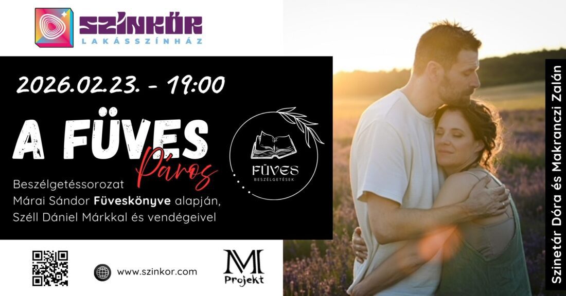 A "Füves beszélgetések- Márai Sándor Füveskönyvére épülve- februári vendégek: Szinetár Dóra és Makranczi Zalán" esemény leírása: